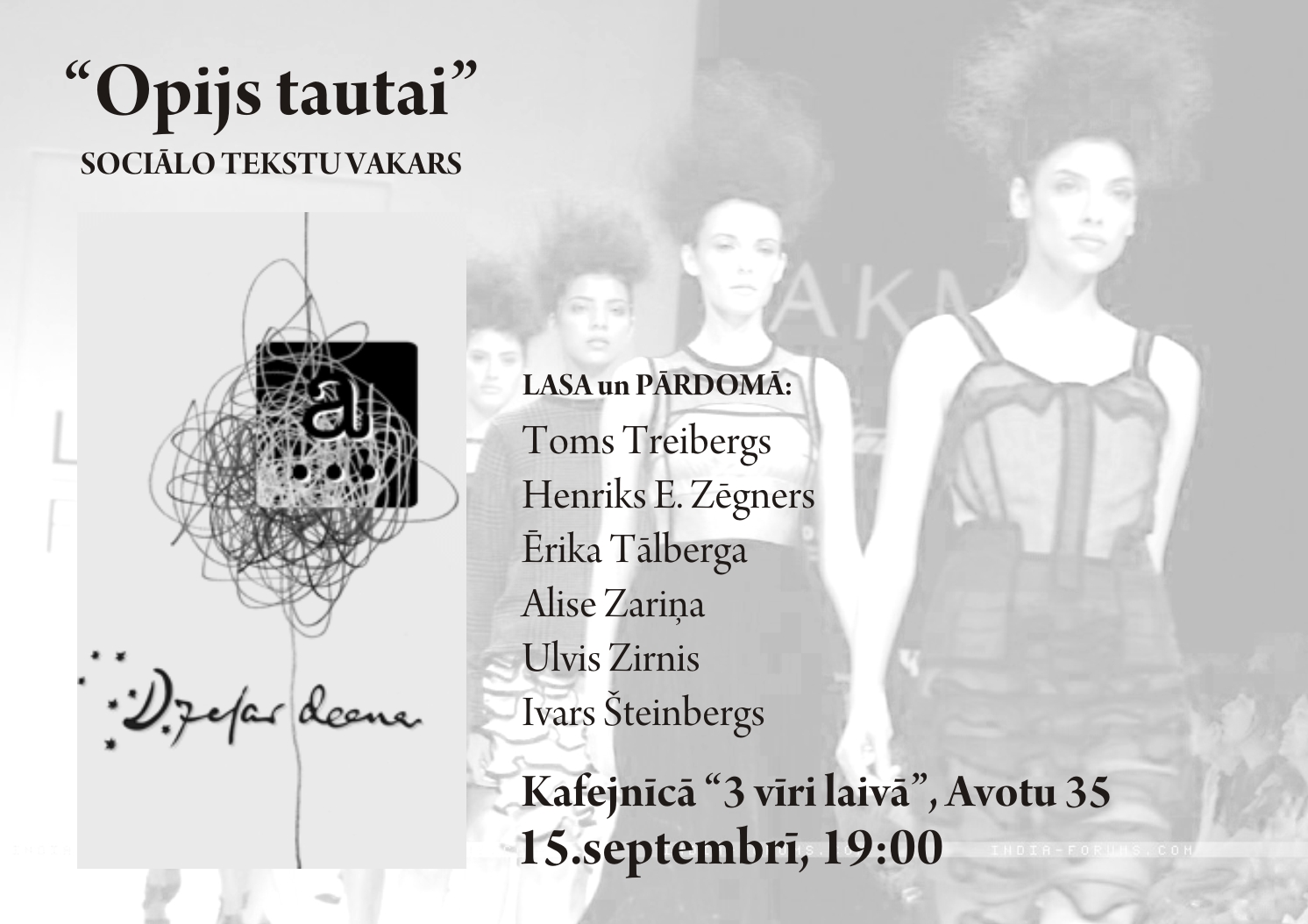 „Opijs tautai” – sociālo tekstu vakars Dzejas dienu ietvaros, 15. septembrī 19:00, krodziņā „3 vīri laivā” (Avotu 35).